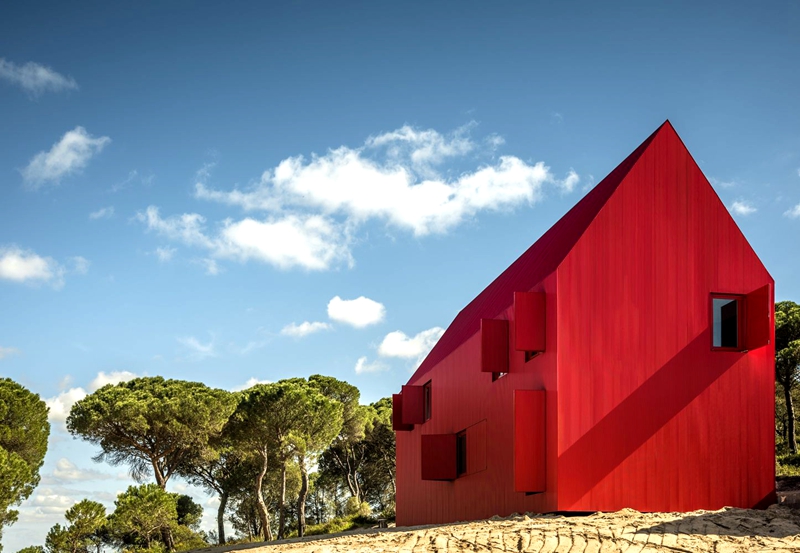 木屋的形狀和顏色設計主要是為了模糊外部和內部空間之間界限。木屋的設計旨在提供一個...